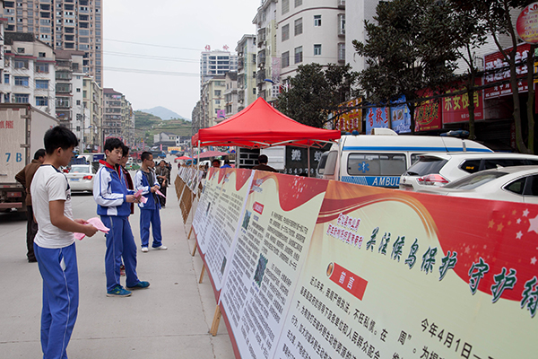 为提高群众的爱鸟意识,保护野生动物,维护自然生态平衡。安化开展了形式多样的宣传。一是县林业局制作5块宣传板块。在县政府门口、东坪镇完小、各乡镇等地开展以"依法保护鸟类,建设美丽中国"为主题的爱鸟周活动。活动期间,还展出由摄影爱好者在安化所拍摄的琵嘴鸭、黑领噪鹊、紫啸鸫等40余种候鸟图片60多副。候鸟们捕食、飞翔、嬉戏的美丽画面,吸引众多群众前来观赏。活动现场,还专门设置了咨询台,为过路行人发放安化野生动物保护宣传资料5000份,呼吁大家摒弃不良饮食陋习,不食各种鸟类和野生动物,争做文明、守法、有爱心的公民。县委书记杨光鑫、县长熊哲文等县领导出席活动;二是各乡镇在农贸市场、村庄、学校等人口集中地张贴爱鸟宣传横幅、标语200多条;三是通过电视、网络、微信等媒体进行爱鸟周宣传。安化林业信息网还开辟了爱鸟保护宣传专栏,倡导保护生态环境,鼓励人们关注野生鸟类,保护鸟类赖以生存的家园,从而更好地保护生物多样性,共同营造一个人与自然相互和谐的世界。